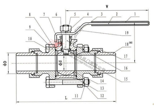 4、Q21F三片式活接对焊球阀主要根据剖面、长度、高度、外形等作出说明。