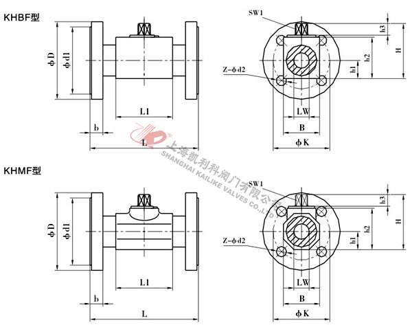 4、KHBF、KHMF法兰式高压球阀主要根据剖面、长度、高度、外形等作出说明。