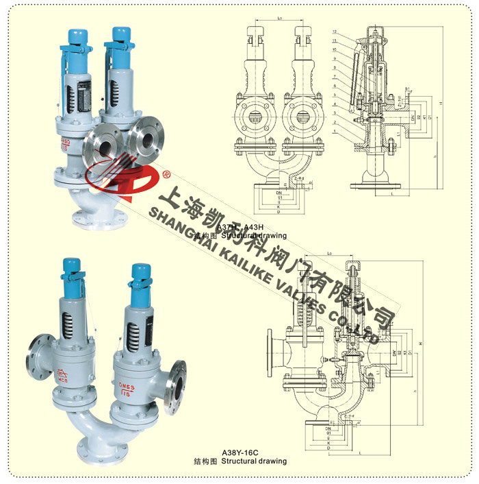 上海凯利科为您提供A38Y、A43H、A37H双联弹簧式安全阀结构图,本结构图希望对您有所帮助。