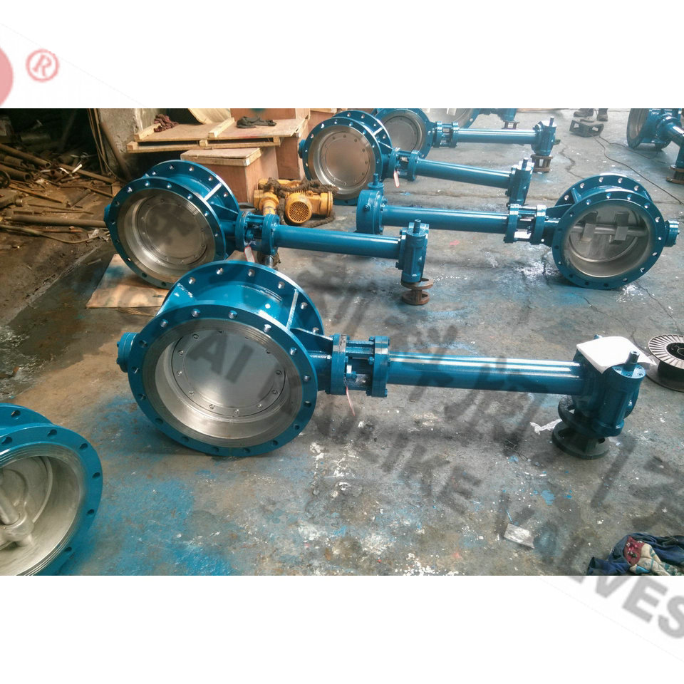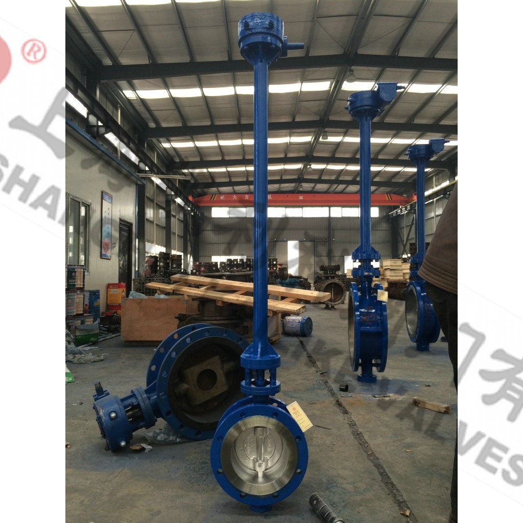 D371X加长杆对夹式蝶阀该产品由橡胶密封蝶阀和碳钢或不锈钢阀板、阀杆构成。适用于温度≤80~120℃如食品、医药、化工、石油、电力、轻纺、造纸等给排水、气体管道上作调节流量和截流介质的作用。