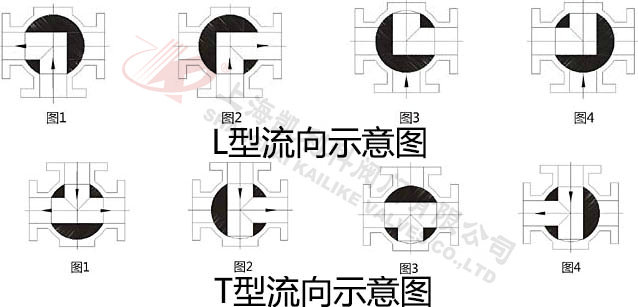 Q14F/Q15F高平台三通球阀有T型和L型。T型能使三条正交的管道相互联通和切断第三条通道,起分流、合流作用。L型只能连接相互正交的两条管道,不能同时保持第三条管道的相互连通,只起分配作用。