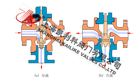 ZDLQ、ZAZQ电动三通分流调节阀是由直行程电子式电动执行机构和采用圆筒型薄壁窗口形阀芯的三通合流(分流)阀组成。具有结构紧凑、重量轻、动作灵敏、流量特性精确,直接接受调节仪表输入的(4-20mA DC 0-10mA DC或1-5V DC)等控制信号及单相电源即可控制运转,实现对工艺管路流体介质的自动调节控制,广泛应用于精确控气体、液体、蒸汽、油品等介质的工艺参数如压力、流量、温度、液位等参数保持在给定值。适合于把一种流体通过三通阀分成二路流出或把两种流体经三通阀合并成一种流体的工况。