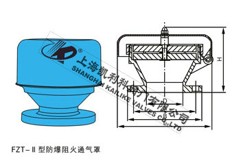 FZT防爆阻火通气罩安装于重质油罐顶部起呼吸作用,并为罐内提供足够的通风条件;同时在事故状态下起到溢流保护作用,保证罐体的完好,确保油品库区的消防安全,一般为法兰连接。