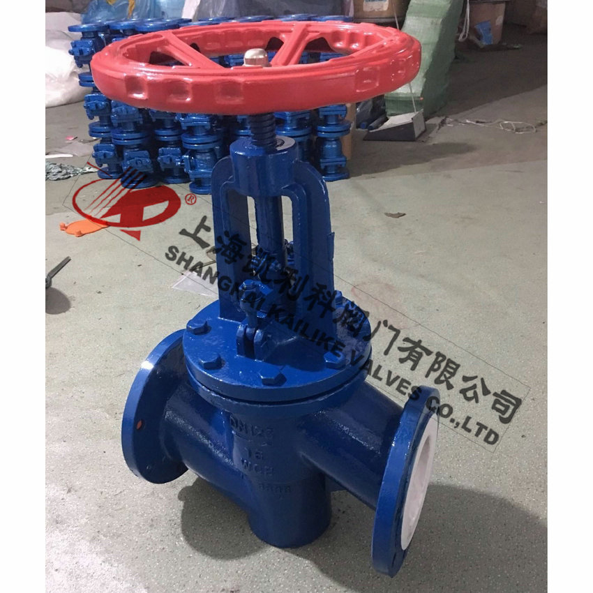 J41F46法兰衬氟截止阀适用在 -50~150℃ 的各种浓度的王水、流酸、盐酸、氢氟酸和各种有机酸、强酸、强氧化剂,还适用于各种浓度的强碱有机溶剂以及其它腐蚀性气体,液体介质的管路上使用。