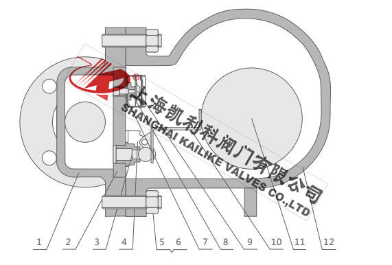 该阀刚启动时,自动排空气装置迅速排除系统中不凝结气体,当蒸汽和热凝结水进入后,阀腔内温度随着升高,排空气装置自动关闭,浮球根据凝结水水位的变化而作升降,带动杠杆调节阀座孔的开度,连续排放凝结水。当凝结水停止进入时,浮球靠自重下降,驱使杠杆带动阀芯关闭排水阀座孔。