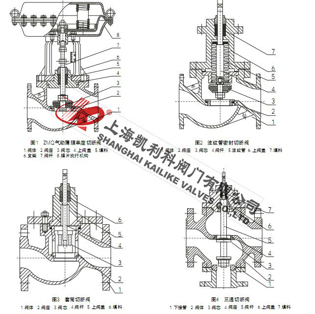 (1)气动薄膜切断阀采用多弹簧执行机构与调节机构用三根立相连,整个高度可减小约30%,重量可减轻约30%。