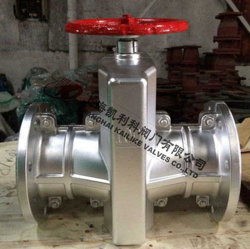 GJ41X不锈钢管夹阀由上下铸铁、铝合金、不锈钢阀体,橡胶管套、大小阀杆闸板、上下导柱等零件组成。当顺转手轮时,使大小阀杆同时带动上下茬板、压缩管套、进行关闭,反之即行开启。这样,闸板在导柱之间上下往复完成阀门开闭工作,另因橡胶管套或承力小,所以在开闭时,操作人员旋转轮时只要感到适量抵触,均达到开闭极点。切勿尽力多人补助,禁用其他工具开闭。