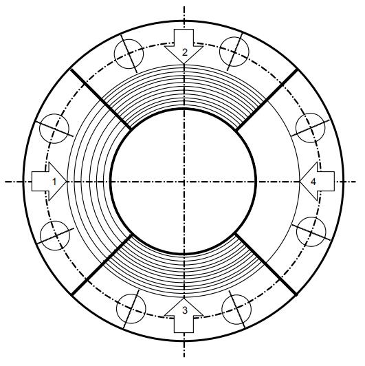 (4) Class 300 and higher pressure flanges are made with a counterbore at the back of the flange. The threads are chamfered to the diameter of the counterbore at an angle of appropriately 45 degrees with the axis of the thread. The counterbore and chamfer are concentric with the thread.