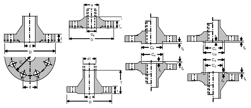 THREAD, SOCKET-WELDING, SLIP-ON, LAP JOINT AND BLIND.