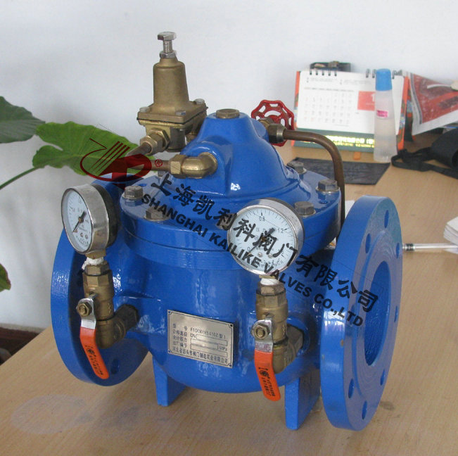 800X压差旁通平衡阀主要由针阀,压差控制导阀,球阀,微型过滤器和压力表组成水力控制阀接管系统,通过专门设计导阀控制室,对压力变化信号进行比较,输出主阀开度信号,控制主阀开度,从而控制主阀出口压差在设定值上。