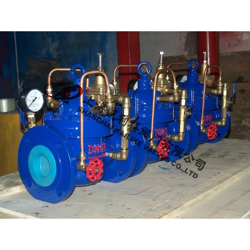 200X稳压阀由主阀、导阀、针阀、球阀、微型过滤器和压力表组成水力控制接管系统。使用时,当调定出口压力后,能自动保持稳定出口压力。稳压阀利用导阀自力控制,不需要其它装置和能源,保养简便,压力控制准确度高,受进口压力和流量影响小,减压稳压可靠。200X稳压阀广泛用于高层建筑、生活区等供水管网系统及城市供水工程。