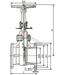 Z44H、Z64H水封闸阀适用于公称压力PN1.6~10.0Mpa,工作温度0~425℃的火力电站回水冷凝系统及石油、化工要求与大气隔离的管道上,切断或接通介质,适用介质为: 水、油品、蒸汽和非腐蚀气体等。填料函设计成水密封结构,接入0.6~1.6Mpa的水填料,摩擦力小,密封好,能全系统与大气 隔离,保证良好的气密性。启闭件采用双闸板向弹性密封,启闭可靠,性能良好。阀杆径调质和表面氮化处理,有良好的搞腐蚀性和抗擦伤性。 结构简单,紧凑合理,检修方便