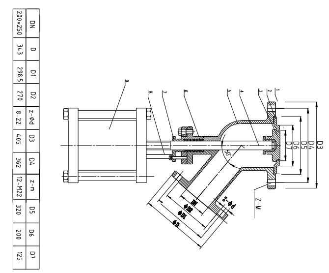国标法兰DN250,内孔是250mm,当用户直接把国标法兰焊在反应釜底的时候,我们的下料口并不是250mm,我们还需要一个阀座外径为250mm,内孔为180mm套在反应釜底部法兰,这时留给阀板的位置只有直径为180mm,则下料口直径为180mm。假如由厂家提供反应釜底下的法兰,厂家提供的DN250法兰,内孔会开设到285mm,在套上外径为285mm的阀座上去,内孔留有200mm。