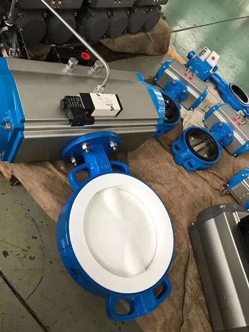 D671F46气动对夹衬氟塑料蝶阀广泛用于防腐管道系统上。主要用以实现阀门的开启、关闭与调节。全衬聚四氟乙烯(F4)、聚三氟氯乙烯(F3)和聚全氟乙丙烯(F46)氟塑料衬里阀,具有耐腐蚀、